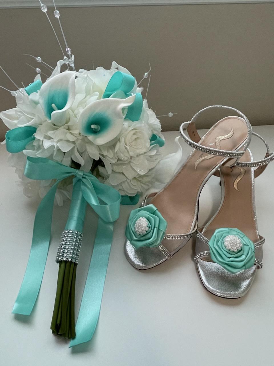 Need a matching flower accent on shoes, dress, for the groom or bridesmaids? We can create that too, just ask us.